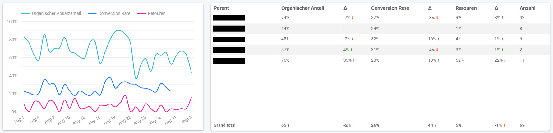 Ein weiteres Beispiel sind die Deckungsbeiträge. Beobachtet ihr einen Rückgang der Deckungsbeiträge nach Werbung, lohnt sich häufig zuerst ein Blick auf die Deckungsbeiträge vor Werbung. Sind diese ebenfalls gesunken, wird der DB-Rückgang in diesem Fall also nicht durch die Werbe-Performance erklärt. Trotzdem sollte hier nicht direkt eine Preiserhöhung angesetzt werden. Oft werden die DBs vor Werbung auch durch gestiegene Retourenquoten erklärt. Diese führen über die Retourenschäden implizit zu Deckungsbeitragsschäden, die ihr ohne die spezielle Betrachtung der Retourenquote so nicht erkannt hättet. Wie Retouren auf eure Deckungsbeiträge wirken habe ich in meinem Beitrag dazu ausführlich behandelt.